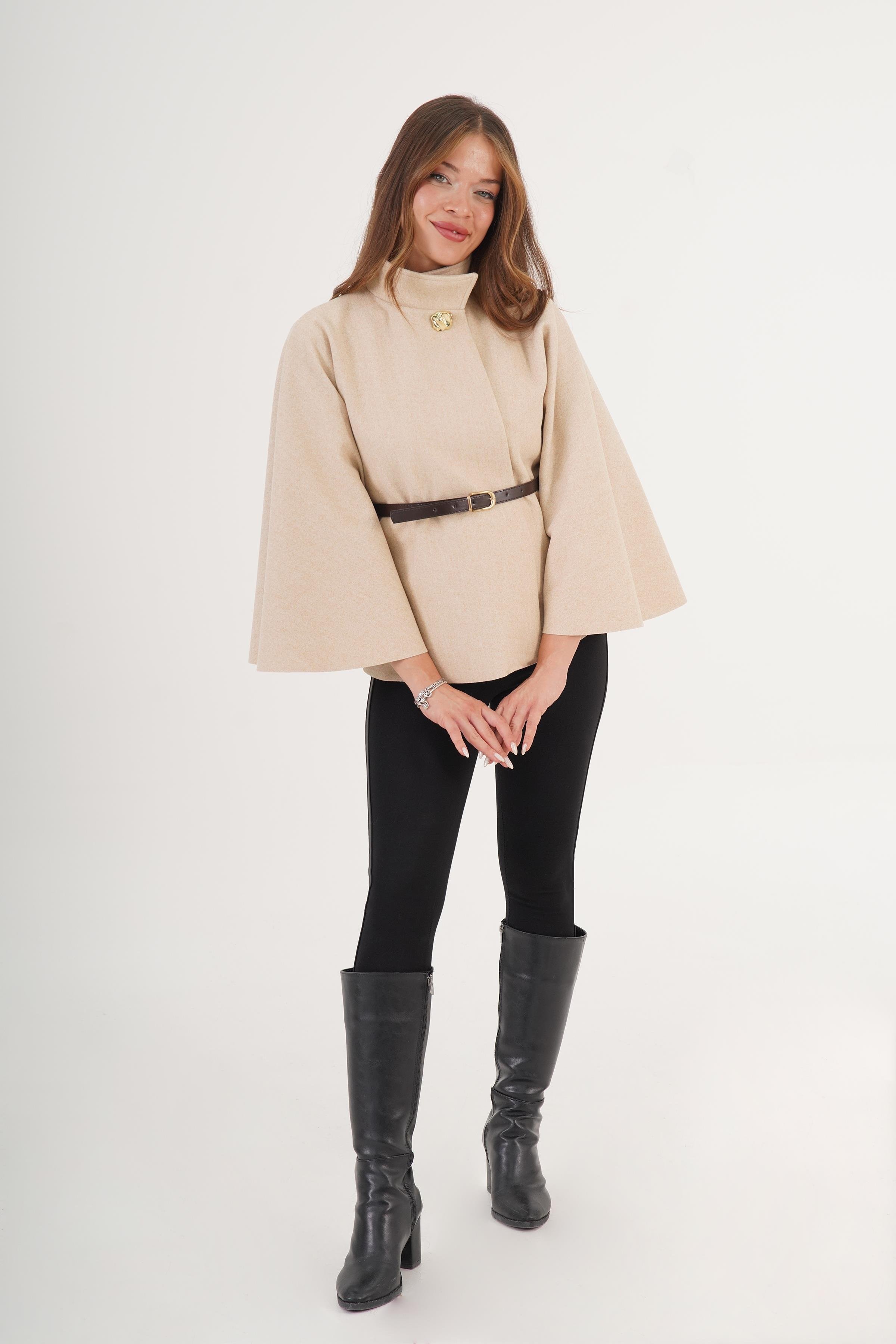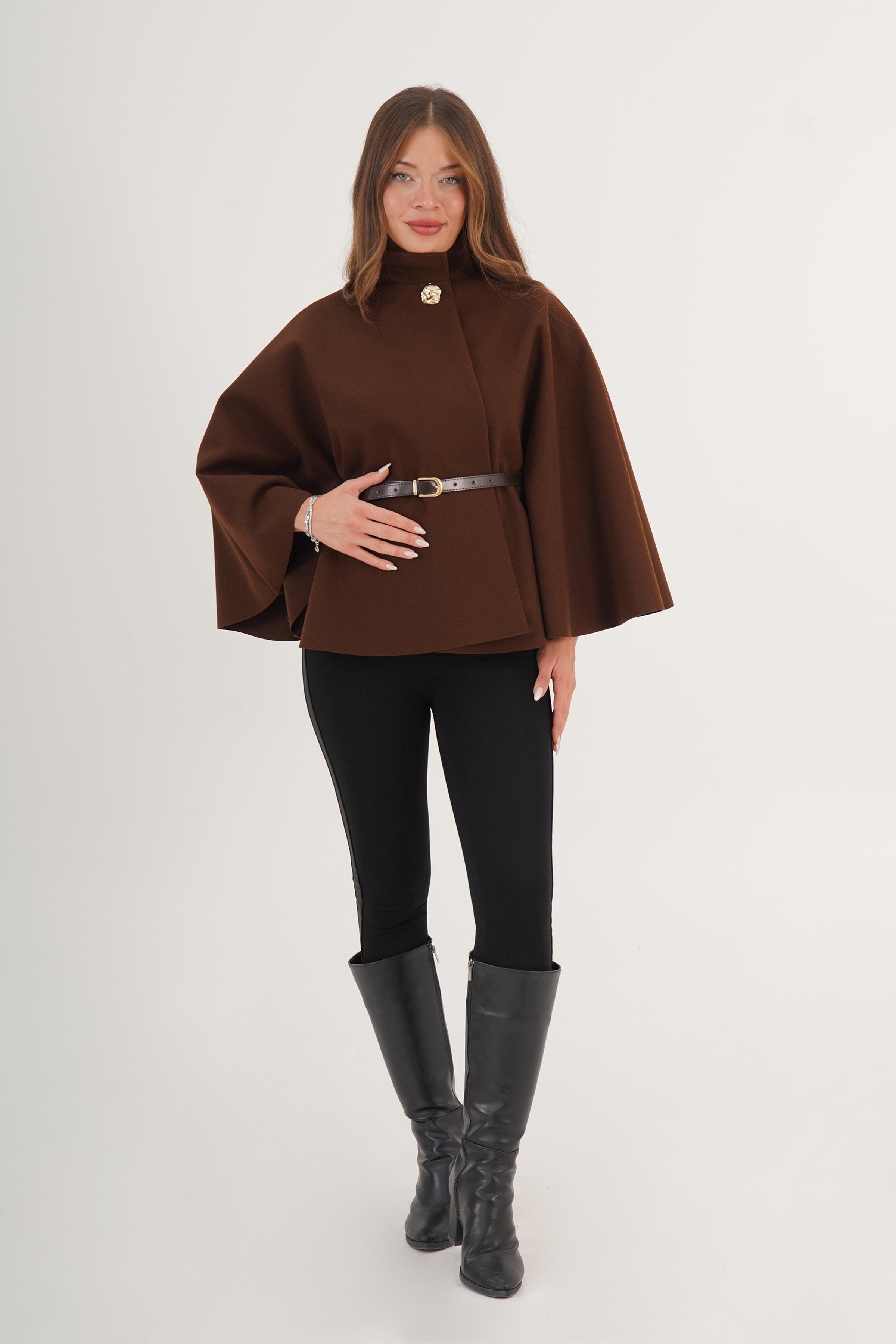 Kemer Detaylı Tek Düğmeli Toptan Panço Stok Kodu(4871-GRİ - SİYAH - KREM - BORDO - KAHVE )