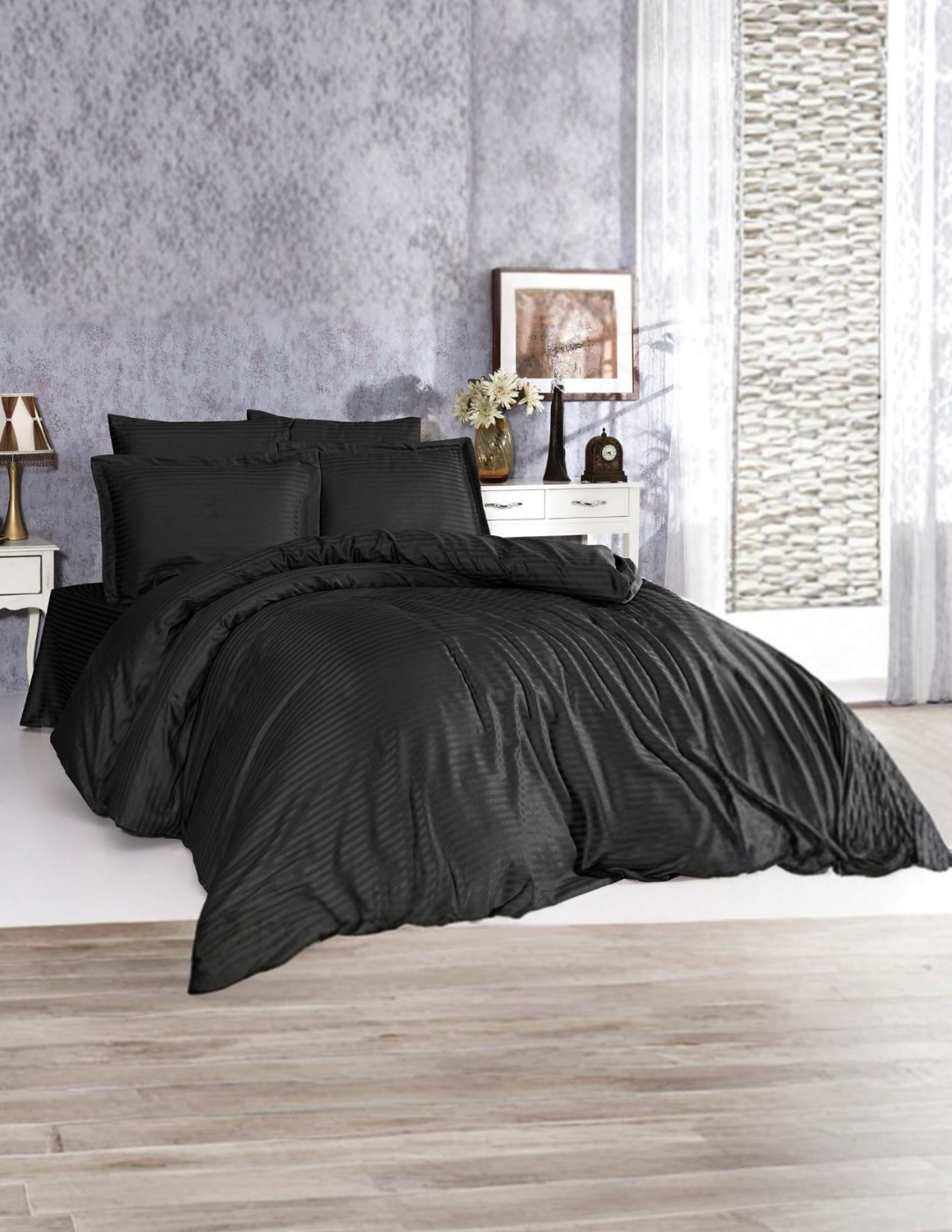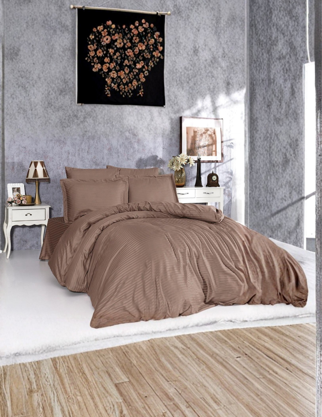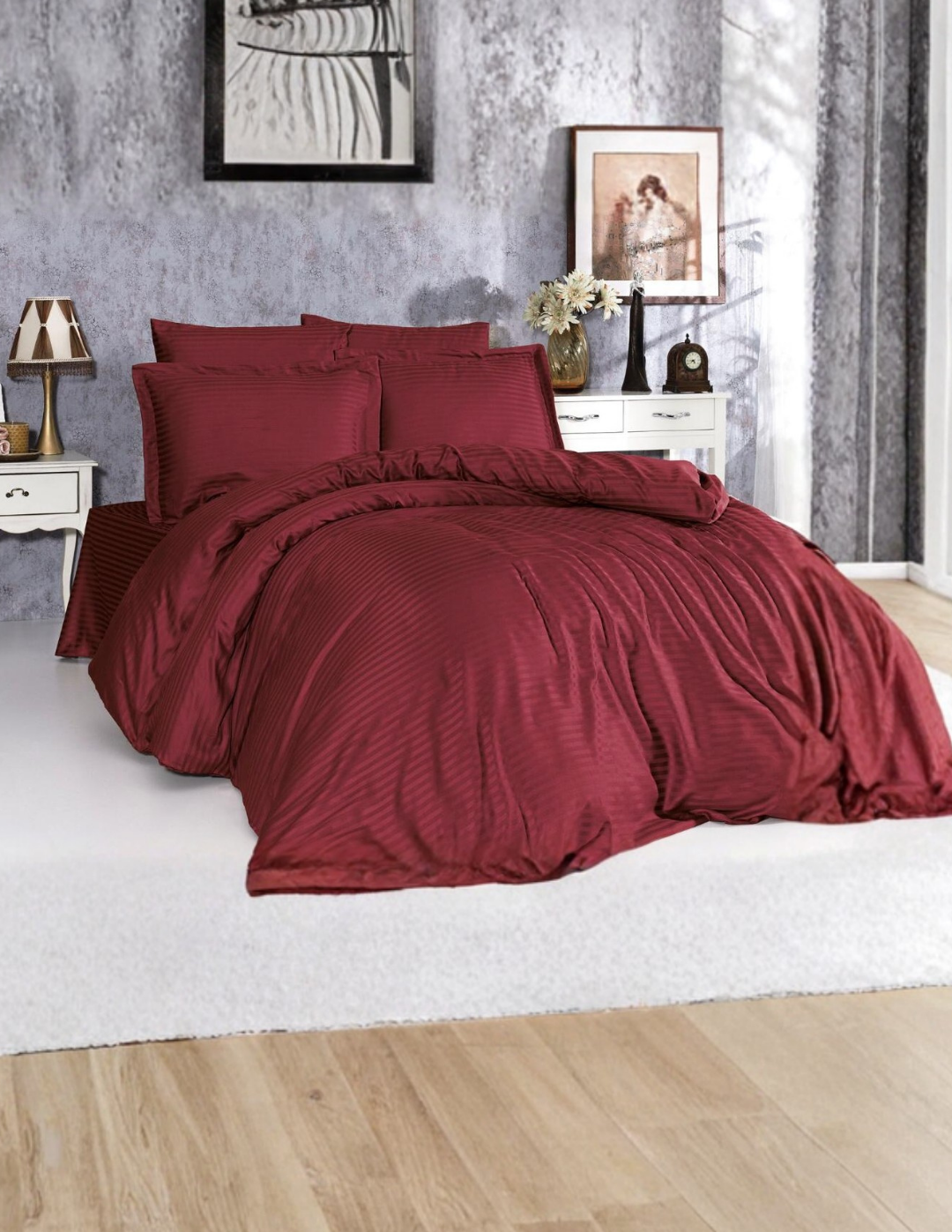 Otel ve ev kullanımı için tasarlanmış çizgili saten nevresim takımı, şıklığı ve konforu bir arada sunar. Yumuşak ve parlak saten kumaşı, misafirlerinize lüks bir uyku deneyimi yaşatır. Takım, tek kişilik ve çift kişilik ölçülerde sunulur ve yüksek kaliteli kumaşı sayesinde dayanıklı ve uzun ömürlüdür. Kolay bakım özelliği ile otel çamaşırhanesi kullanımı için uygundur.