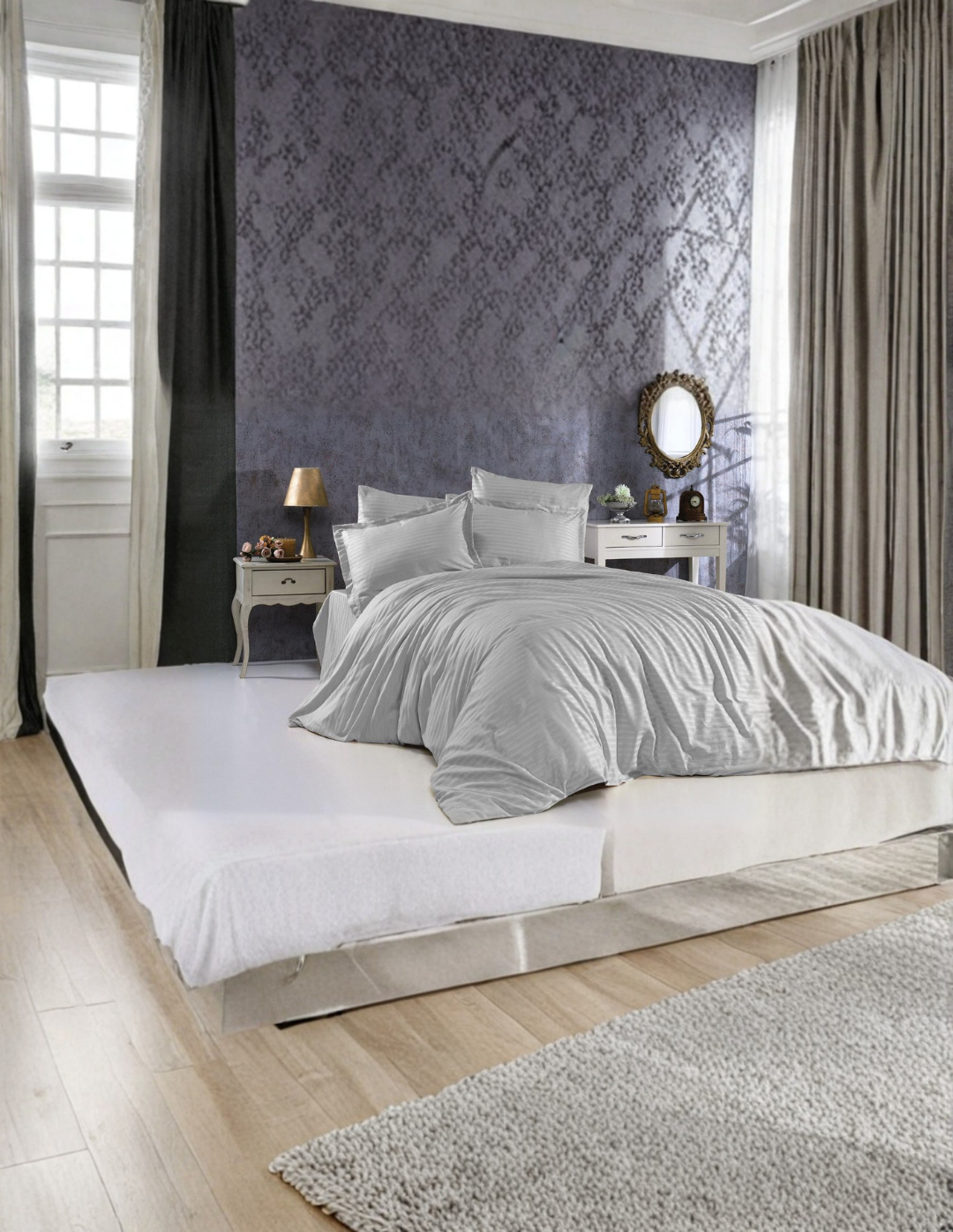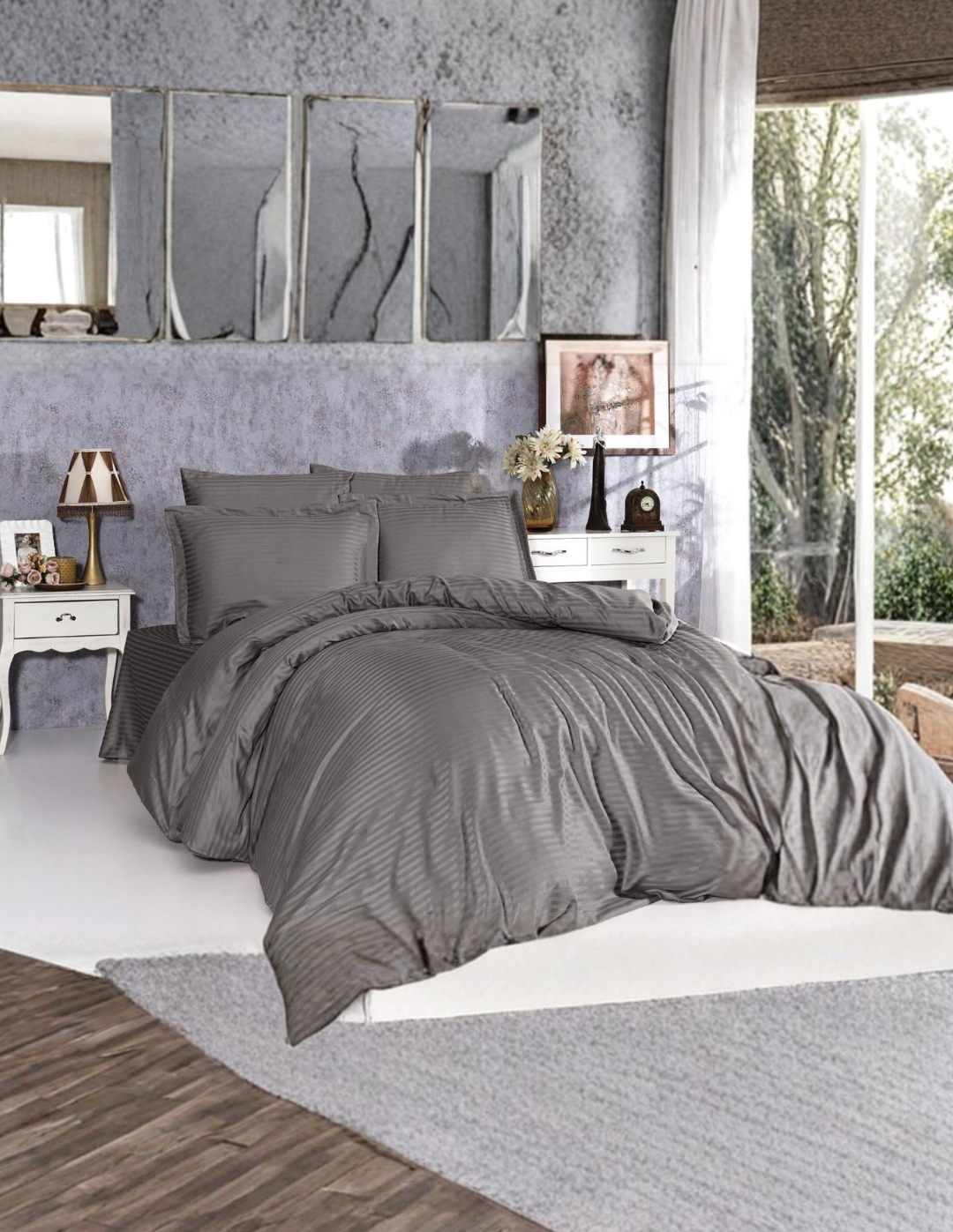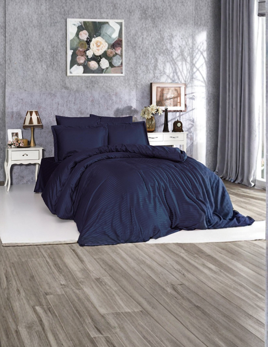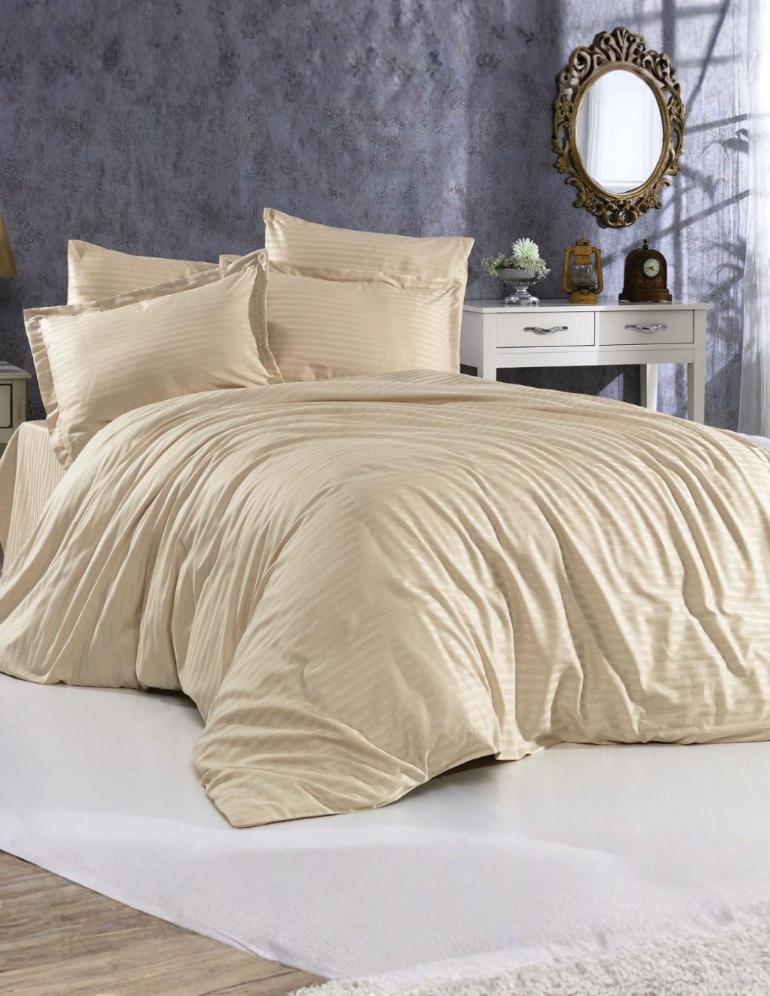 Otel ve ev kullanımı için tasarlanmış çizgili saten nevresim takımı, şıklığı ve konforu bir arada sunar. Yumuşak ve parlak saten kumaşı, misafirlerinize lüks bir uyku deneyimi yaşatır. Takım, tek kişilik ve çift kişilik ölçülerde sunulur ve yüksek kaliteli kumaşı sayesinde dayanıklı ve uzun ömürlüdür. Kolay bakım özelliği ile otel çamaşırhanesi kullanımı için uygundur.